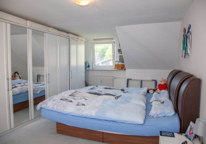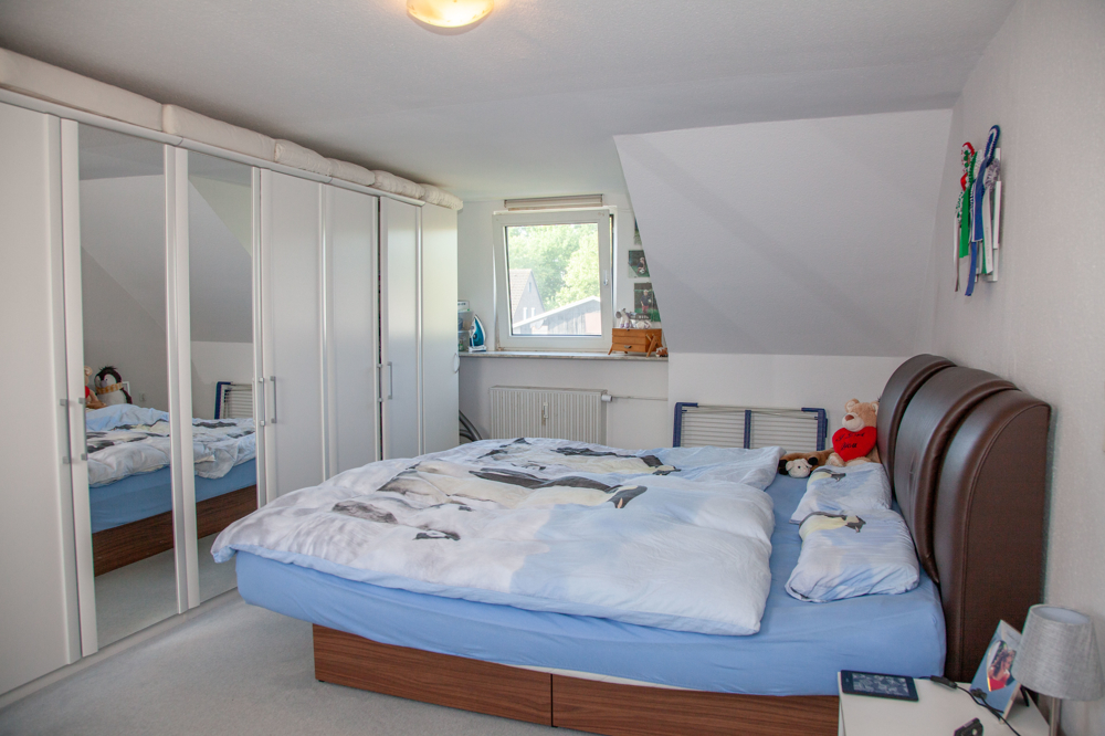 Das ruhig gelegene Schlafzimmer bietet einen idealen Rückzugsort und fügt sich stimmig in den Gesamtgrundriss ein.
