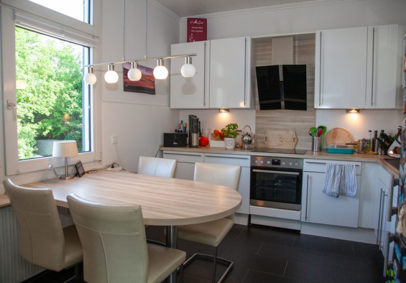 Angrenzend an den Wohnbereich befindet sich die Küche, die ausreichend Platz für einen gemütlichen Essbereich bietet.