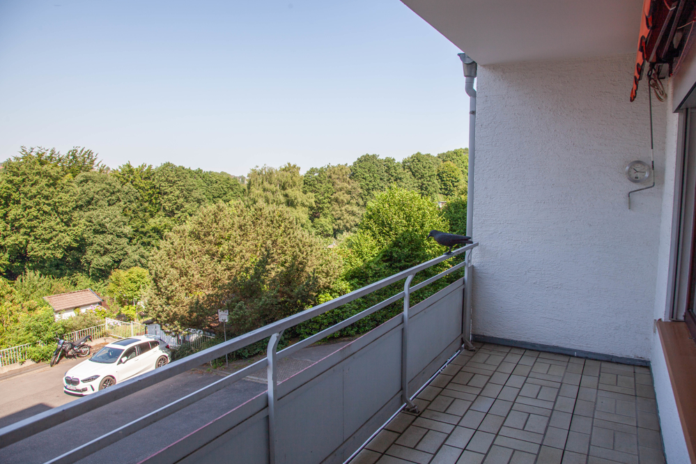Von der zentral gelegenen Diele aus erreichen Sie mühelos alle Räume der Wohnung. Der Wohnbereich ist dank seiner großen Fensterflächen lichtdurchflutet und bietet genügend Platz für einen gemütlichen Essbereich. Ein besonderes Highlight ist die nach Süd-Westen ausgerichtete Loggia. Hier können Sie den Tag in Ruhe ausklingen lassen und haben außerdem einen tollen Weitblick bis zum Remscheider Rathaus.