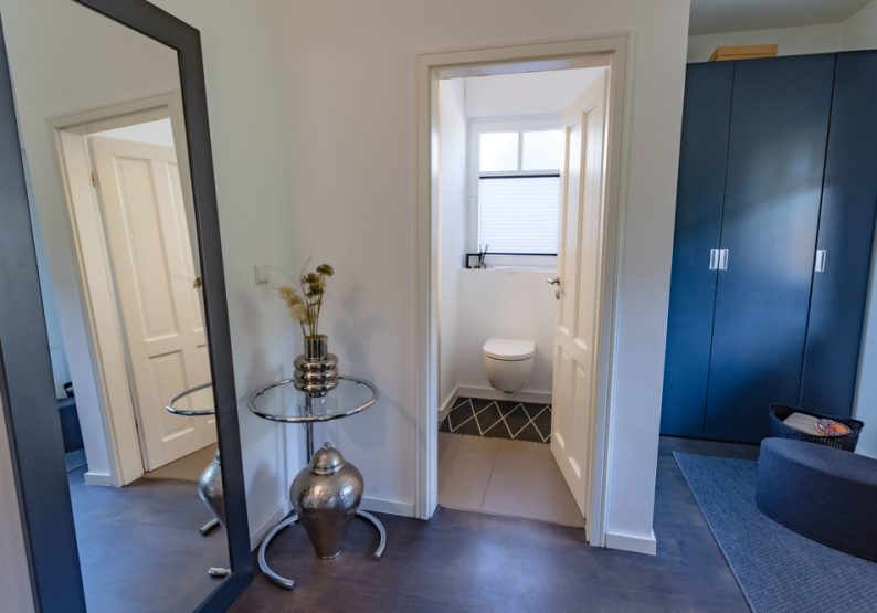 Die Wohndiele empfängt Sie mit Großzügigkeit und der Möglichkeit von hier aus in den Wohnbereich zu gehen oder die Etage zu wechseln. Ein Gäste-WC und ein Garderobenbereich sind sinnvolle Bestandteile dieser Diele.